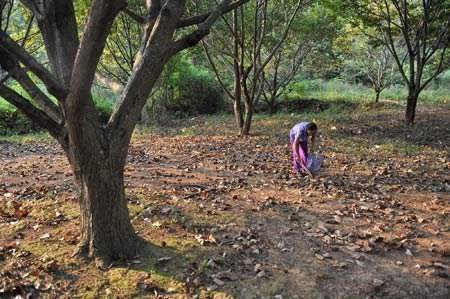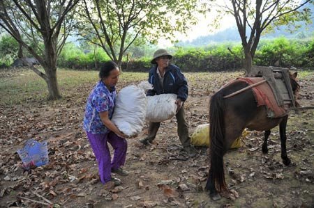 Trong khi anh Nguyễn Văn Quang đu mình trên cành dẻ, rung cho những quả chín rụng xuống, chị Hoàng Thị Minh - vợ anh ở dưới đất vun đám quả lại. Những quả xù xì, đầy gai nhọn có thể làm bị thương bất kỳ ai sơ ý chạm vào, trong mỗi quả xấu xí ấy có 3 hạt dẻ đẹp như ước mơ của cô gái Lọ Lem.