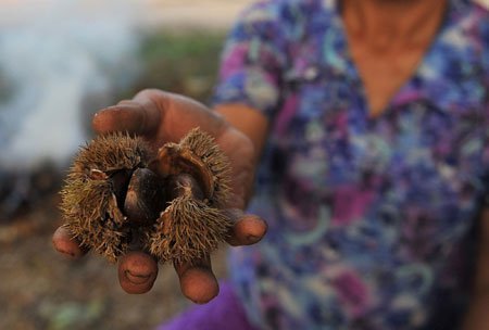 | Vỏ dẻ sau khi tách hạt phải đốt hết, tránh bị giẫm phải vì gai cứng như chông. |