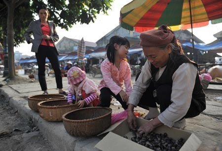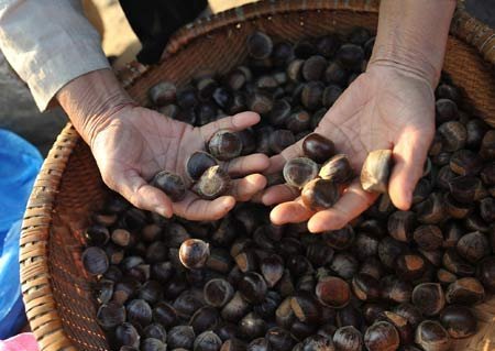 | Tại chợ huyện Trùng Khánh, hạt dẻ chỉ bán trong khoảng từ 6 - 7 giờ sáng, muộn không còn. |