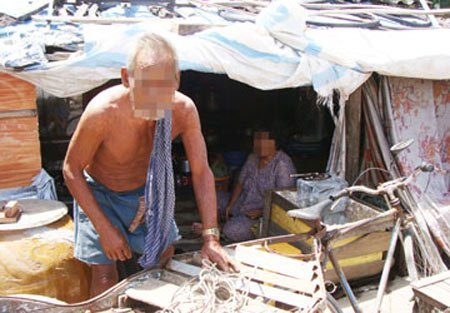 tiền thuê nhà trọ, hai ông bà ra vỉa hè che căn chòi lụp xụp làm nơi tá túc.