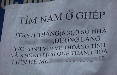 Thậm chí nhiều người khi đăng những mẩu tin tìm người ở ghép đã thẳng thừng ghi rõ không tiếp nhận dân Thanh Hoá - Nghệ An mà không kèm theo lý do cụ thể nào.