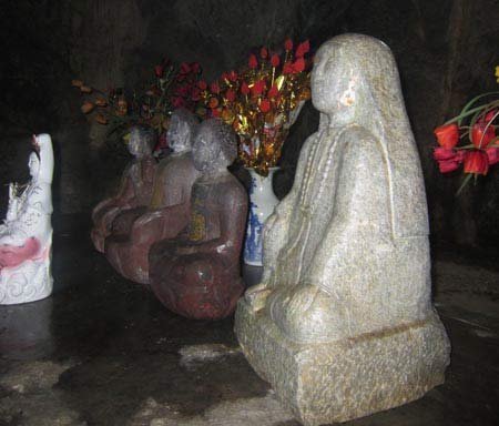 | Những pho tượng lạ trong hang Thánh Hóa. |