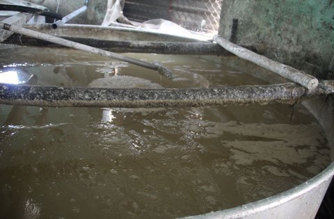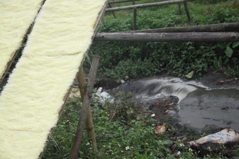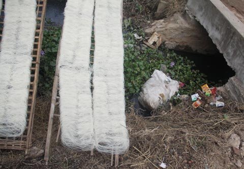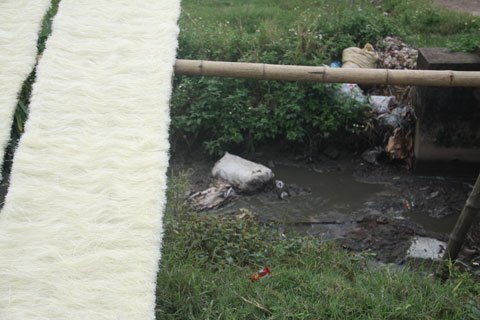 Trên là miến, dưới là cống nước thải đen xì, hôi thối.