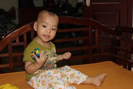 “Tôi phát hiện ra hiện tượng kỳ lạ của con trai khi cháu mới 3, 4 tháng tuổi. Tưởng là một thời gian bé sẽ thay đổi nhưng mà hơn 1 năm nay cháu vẫn vậy. Mấy tháng nay chúng tôi mời các cô giáo đến giúp cháu vận động để hai tay cử động khác biệt đi nhưng không có chuyển biến đáng kể”, chị Trang cho biết.