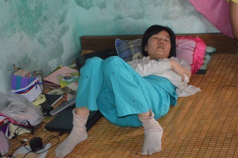 | Vương Thị Dung nằm liệt trên giường. |