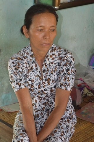 Ngồi trò chuyện, bà Đào sụt sùi kể về những bất hạnh của gia đình. Chồng bà là ông Vương Công Mai (62 tuổi) sức khỏe rất yếu do bị mất quả thận. Để kiếm cái ăn nuôi đứa con liệt giường, ông phải gượng dậy theo bạn chài ra biển làm thuê.
