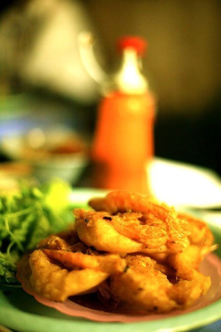 | Bánh tôm giòn tan, óng mỡ, thơm ngọt vị tôm tươi quyện với nước mắm pha, với rau sống xanh mát... |