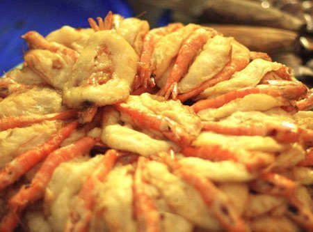 | Ấm sực bên nồi bánh tôm rán ngập mỡ... |