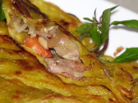| ... hoặc bánh xèo với lớp vỏ giòn tan, óng vàng..., quyến rũ khó quên khi tôm, thịt và giá đỗ cùng tan trong miệng... |
