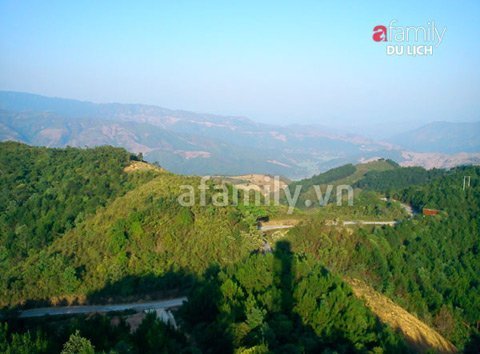 | Toàn bộ cảnh núi non hùng vĩ từ độ cao 1.648m trên đỉnh đèo Pha Đin. |