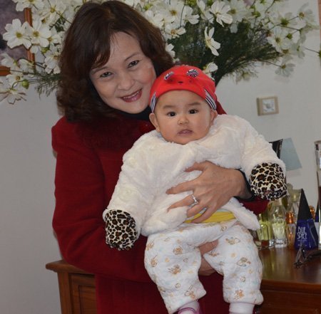 Hoàng Cúc hạnh phúc bên gia đình nhỏ với cháu nội xinh như thiên thần. |
