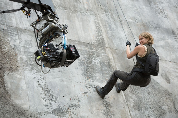 Như chia sẻ của dàn diễn viên thì cảnh quay này thực sự là một thử thách với cả sức khỏe lẫn khả năng chịu đựng của mỗi người. Nữ diễn viên Woodley hồi tưởng: 'Họ kéo chúng tôi lên và chúng tôi đặt trọn niềm tin vào sợi dây cáp đang giữ cơ thể của mình. Chúng tôi bước đi trên bức tường và treo lơ lửng ở đó cho tới khi nghe thấy đạo diễn hô 'Action'.