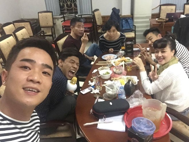 Nam diễn viên sinh năm 1990 kể có những đêm chưa đến lịch tập, dàn diễn viên trẻ vẫn ở lại xem các anh chị tập để học hỏi kinh nghiệm. Nghệ sĩ Quốc Khánh, Công Lý sẽ chỉ cho những chi tiết hay, còn Xuân Bắc và Quang Thắng luôn tạo không khí thoải mái để các bạn cố gắng.