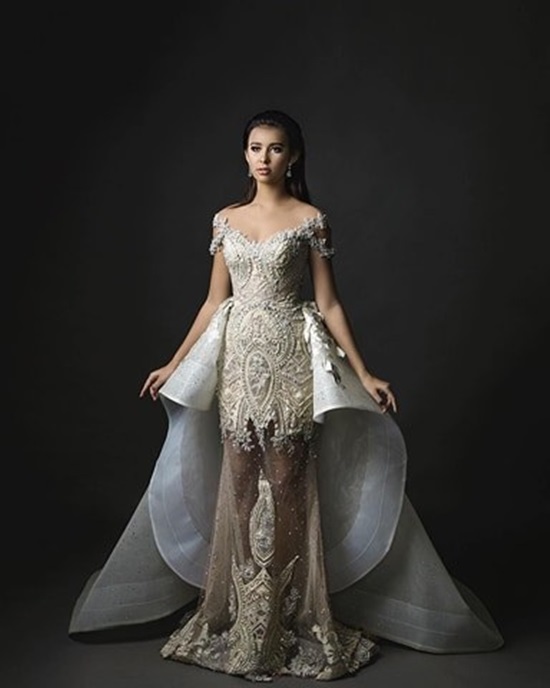 | Bộ cánh mang lại giải Trang phục dạ hội đẹp nhất cho người đẹp đến từ Indonesia. |
