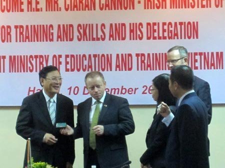 | Bộ trưởng Bộ GD-ĐT Phạm Vũ Luận iếp đón Bộ trưởng Bộ Đào tạo và Kỹ năng Ireland, ngài Cianran Cannon tại trụ sở Bộ GD-ĐT |