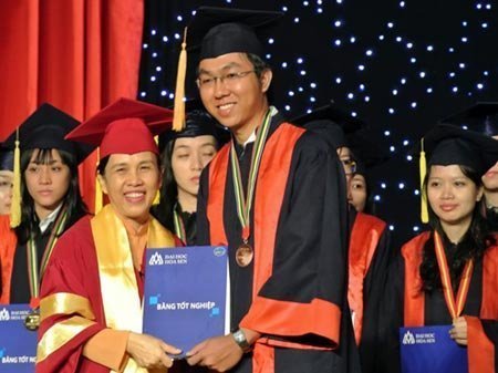 | Sinh viên Trường ĐH Hoa Sen nhận bằng tốt nghiệp sáng 18-12 Ảnh: Minh Giảng |