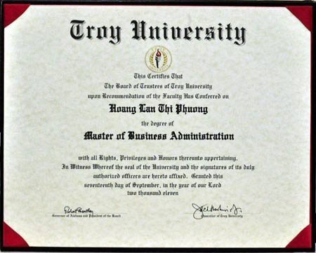 | Bằng MBA do ĐH Troy (Mỹ) cấp |