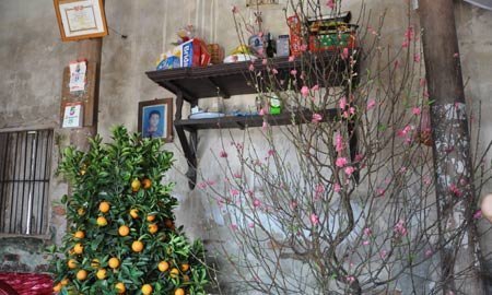 | Những năm trước cái ăn còn không đủ, huống chi chơi hoa, sắm tết nhưng năm nay nhà cô Thu đã có nhiều đổi thay. Cây đào và quất này là do một dược sĩ vì quý mến Duẩn nên âm thầm mang đến tặng |