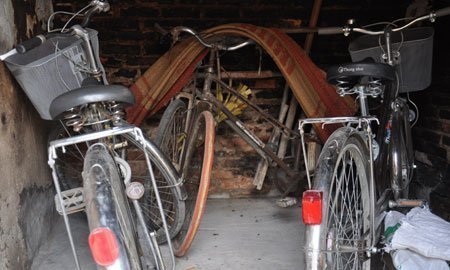 | Chiếc xe đạp thủng lốp giờ nằm gọn trong góc bếp như một kỉ niệm thời đi học phổ thông của Duẩn. Nó nằm lọt thỏm giữa 2 chiếc xe đạp mới được nhà hảo tâm mang tặng em |