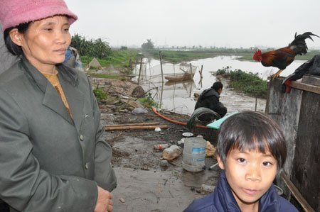 Năm 2000, trưởng xóm Cổ Bản cho họ thầu ít đất ao cạnh đình làng. Sau nhiều thay đổi, nay ao đã bị lấp, căn nhà họ cất tạm trên mảnh đất này nhiều lần chính quyền đã tính thu lại. Chị nghèo quá nên van lơn. Và nó cứ liêu xiêu nhưng là nơi tránh nắng mưa cho gia đình chị.