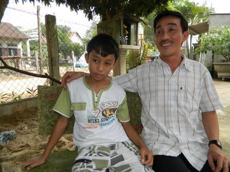| Em Nguyễn Võ Tuấn Nhân bên cạnh người cha |