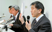 Giám đốc điều hành ĐH Waseda – ông Aiji Tanaka, giơ phiếu trả lời câu hỏi bài thi tuyển sinh ĐH trong buổi họp báo ở Tokyo hôm thứ hai. |