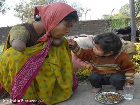 Bên cạnh đó, những bức ảnh về người đàn ông bẩn thỉu ngồi cố gắng vét đồ ăn thừa, một cậu bé còn nhỏ nhưng đã phải bê gạch mưu sinh, hai chị em gái bé bỏng ôm nhau sống cô đơn ngoài đường…đã khiến nhiều bạn trẻ nhìn lại cuộc sống của chính mình.