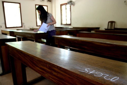 | Giám thị ghi số báo danh. Ảnh: Lê Anh Dũng |