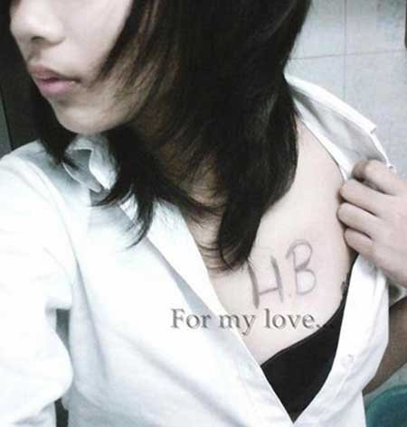 Ngày càng có nhiều nữ sinh chơi ngông xăm viết tên người yêu lên ngực. Những pha tỏ tình lần sau máu me, ác liệt hơn lần trước. Nói ra e có phần hơi tục mong các bạn đọc bỏ qua chứ không ít nữ sinh phơi hết, chỉ dùng ngón tay bịt lại phần núm vú của mình mà thôi. Kiểu bày tỏ tình yêu thô thiển, tục tĩu ấy xuất hiện ngày càng nhiều khiến không ít người âu lo về lối sống không bình thường của giới trẻ, nhất là các cô gái mới lớn khi cả gan bước lên những luân thường làm điều mình thích mà chẳng nghĩ gì đến hậu quả ngày mai.