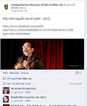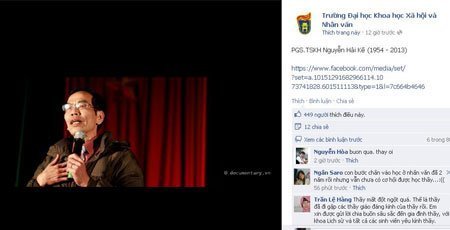 | Trang facebook của Trường ĐH Khoa học xã hội và nhân văn ngập tràn những lời chia buồn, thương nhớ người giảng viên được nhiều thế hệ sinh viên kính trọng |