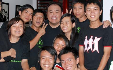 Jimmy Phạm (ở giữa, không mặc áo đồng phục ) và các học viên KOTO. ảnh :Tuổi trẻ