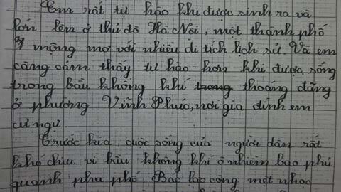 Em rất tự hào khi được sinh ra và lớn lên ở thủ đô Hà Nội, một thành phố mộng mơ với nhiều di tích lịch sử. Và em càng cảm thấy tự hào hơn khi được sống trong bầu không khí thoáng đãng ở phường Vĩnh Phúc, nơi gia đình em cư ngụ.