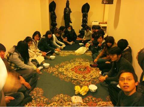 Các bạn du HS Việt Nam từ các vùng bị thảm họa về Tokyo có chỗ ăn, ngủ tại chùa Nisshin Kutsu. Ảnh do các bạn gửi về chiều 16/3.