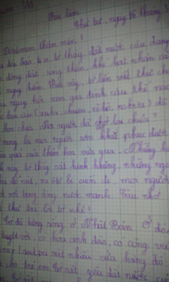 Mẹ của Hân cho biết, ở trường bé học giỏi văn, thường được điểm 9, 10. Trước đây, khi có lũ lụt miền Trung, bé cũng viết, nhưng vì ngày đó không có báo nào đăng những bài viết của trẻ nên chị không gửi đi.