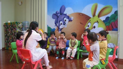 | Các bé đang chơi cùng cô ở trường mầm non Thiên thần nhỏ. |
