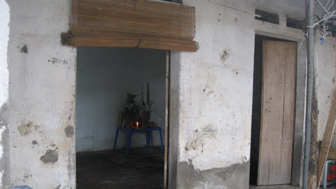 Căn nhà lụp xụp của Thắng không có một vật dụng nào khác ngoài chiếc bàn thờ bằng chiếc bàn nhựa.