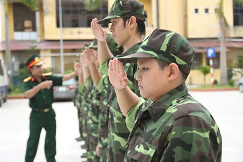 Các bạn nhỏ tham gia Học kỳ quân đội. Nguồn: Tiền Phong |