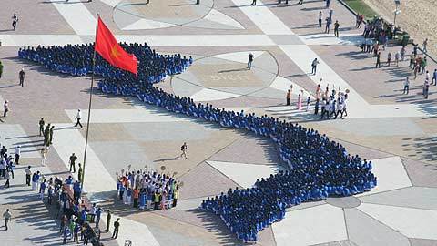 1.500 đoàn viên thanh niên tham gia nắm tay nhau xác lập kỷ lục Guiness về xếp hình bản đồ Việt Nam trên bãi biển Nha Trang (Khánh Hòa) ngày 5/6 (Ảnh Trần Công Thi) |