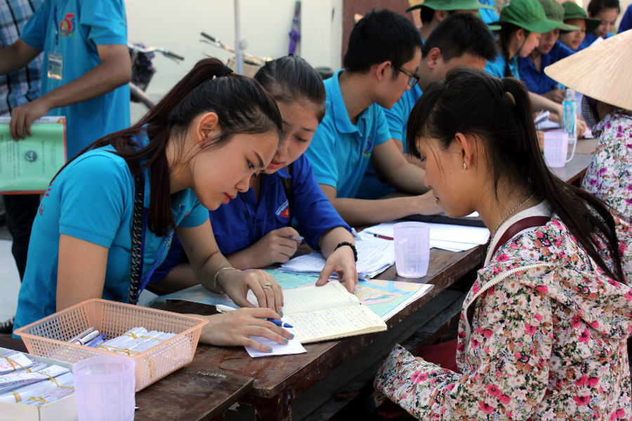 Sáng 30/6, hàng vạn thí sinh đã đổ về các cụm thi ở Nghệ An, Thanh Hóa, Hà Tĩnh, Quảng Bình... làm thủ tục đăng ký dự thi. Để tránh cái nắng gay gắt, phụ huynh và các thí sinh đã đến điểm đăng ký từ rất sớm.