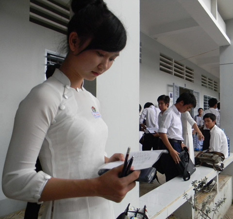 | Một nữ sinh khá hồi hộp trước giờ thi tại HĐCT THPT Bình Minh |