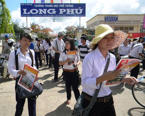 | Thi tại cụm Tam Bình, Hội đồng coi thi (HĐCT) Trường THPT Long Phú, 328 TS Trường THPT Phan Văn Hòa phải di chuyển khá xa đến địa điểm thi. 3 chiếc xe khách được huy động chở 147 TS (không có điều kiện, hoàn cảnh khó khăn) đi sang đây thi. Gần 9 triệu đồng vận động xã hội hóa là tổng chi phí để lo cho các TS này đi lại trong 3 ngày thi. |