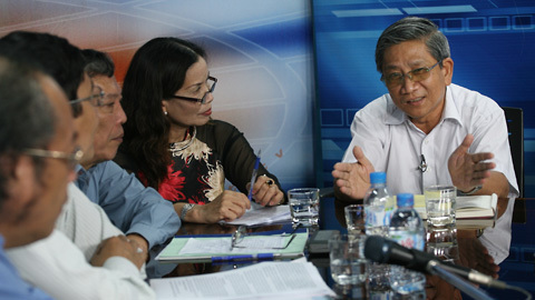 | GS Nguyễn Minh Thuyết đang giao lưu với độc giả. Ảnh VietNamNet |