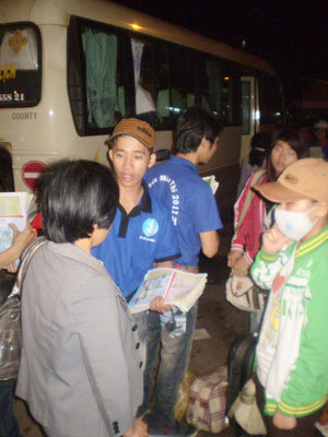 Từ khoảng 3 giờ sáng trở đi, tại bến xe miền Đông luôn tấp nập đón những chuyến xe vào bến. Ở đây, sinh viên tình nguyện cũng “phủ sóng” khắp nơi. Thí sinh Nguyễn Lâm Trường Sơn (Ninh Thuận) có cả bố và mẹ đi theo nhưng vẫn cần sự hướng dẫn của các anh chị tình nguyện về đường đi. Ngoài ra Sơn bị say xe nên được sự chia sẻ của các anh chị sinh viên thì cảm thấy thoải mái và dễ chịu hơn. Sơn cho biết sắp tới em sẽ thi vào Trường ĐH Sư phạm đợt 1 và đợt 2 sẽ dự thi vào Trường ĐH Y dược TP.HCM.