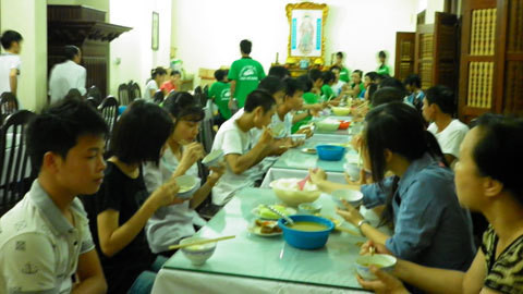 Bữa cơm miễn phí cho sĩ tử trong chùa Bằng A. (Ảnh: Thu Huyền) |