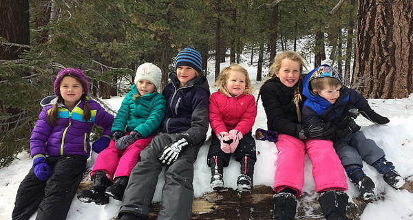 Những em bé dù vẫn đang ngậm núm ti giả vẫn được cho ra ngoài nghịch tuyết