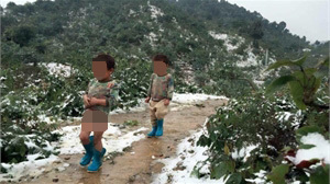 Tuyết rơi nhiều và băng giá không ngăn được các em nhỏ vùng núi vui chơi trong giá rét.