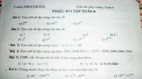 Phiếu bài tập toán 6 của bé K. Trường THCS Cầu Giấy |