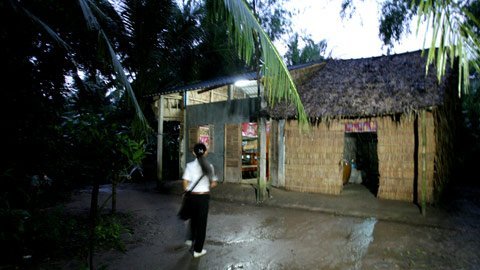 | Hầu như hôm nào Trân cũng trở về ngôi nhà lá đơn sơ nằm sâu trong những con ngõ nhỏ ngoằn ngoèo ở ấp Tân Đại vào lúc trời đã tối sau khi phụ giúp má bán rau củ. |