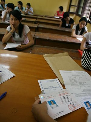 | Sức ép nhu cầu học đại học của đa số người dân hiện nay đang đặt lên vai các nhà quản lý để tìm ra phương thức tuyển sinh hiệu quả. Trong ảnh: Trước giờ làm bài thi ĐH. Ảnh: Lê Anh Dũng |