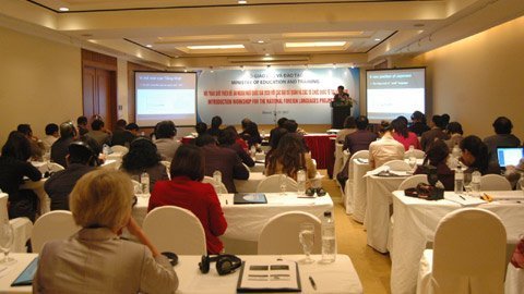 | Hội thảo giới thiệu đề án ngoại ngữ quốc gia 2020 với các đại sứ quán và các tổ chức quốc tế tại VN vừa diễn ra sáng nay 29/11. |
